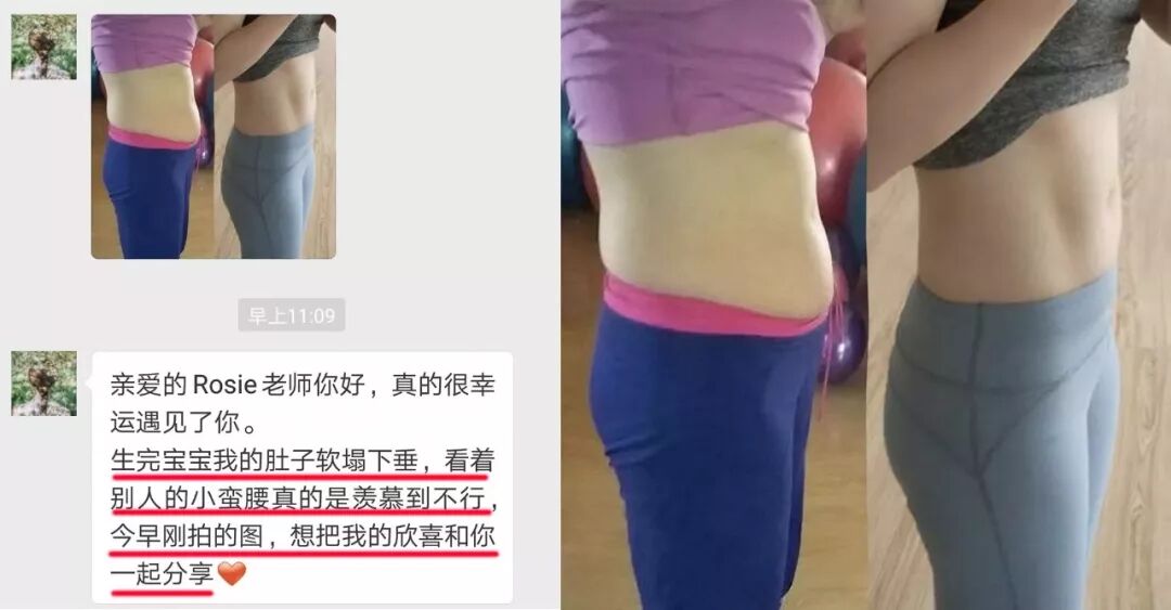 5. 还有宝妈婷婷坚持一个月的训练后,效果明显,早上还给Rosie发来的马甲线图,写道“生完宝宝后,我的肚子软塌下垂,看着别人的小蛮腰真的羡慕到不行,今早刚拍的图,想把我的欣喜和你一起分享❤”。