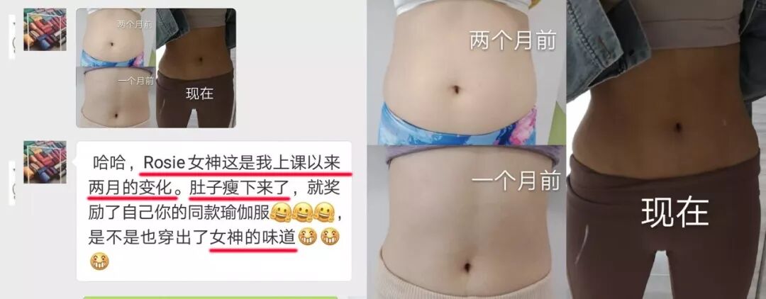 4. 又或是吃货小慧,“以往万万没想到,原来吃吃吃还有马甲线。自从跟Rosie学瑜伽后,现在代谢率明显提高,晚上即便吃多碗米饭或嘴馋撸个串,体重依旧没有影响,而且便秘也从此拜拜了!”