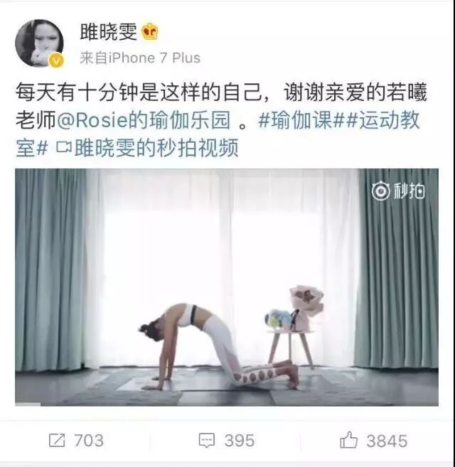 ▲ 雎晓雯经常在微博上分享瑜伽心得