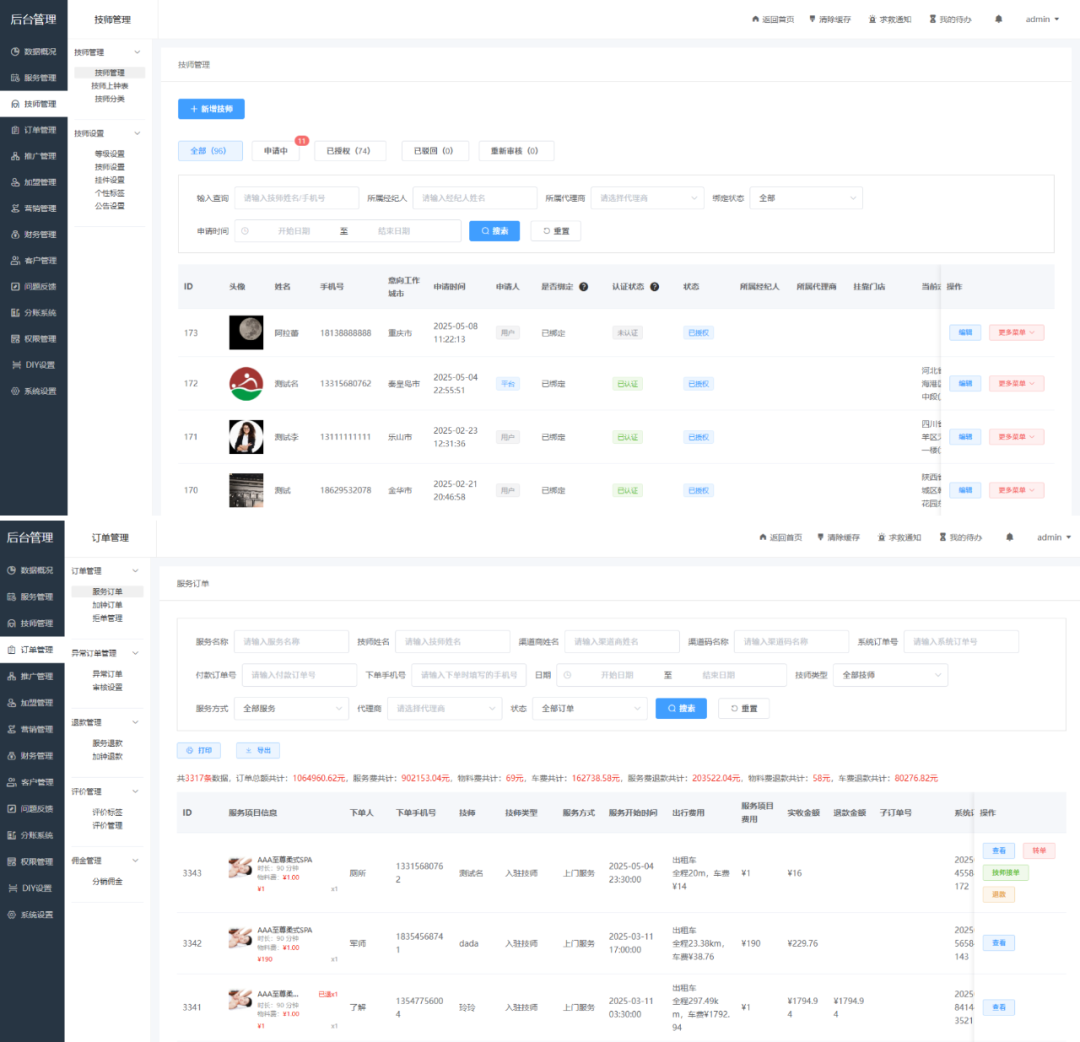 3、技师端全新的管理界面;