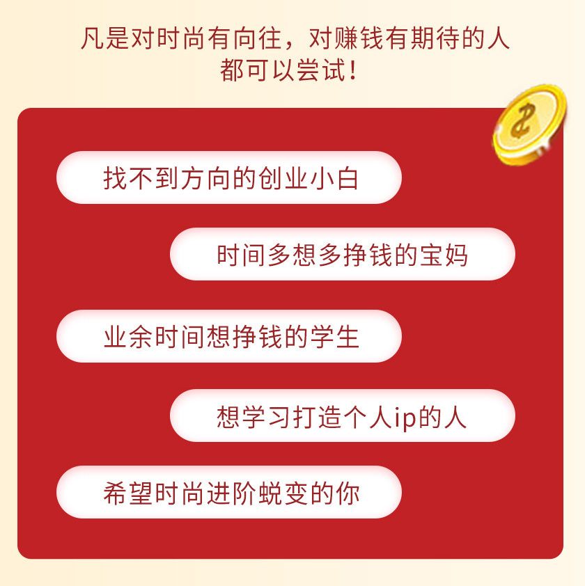 为了帮助更多的人从零基础成为一名超级带货的时尚博主,在最青春漂亮的年纪,既能把美当事业,还能赚钱。