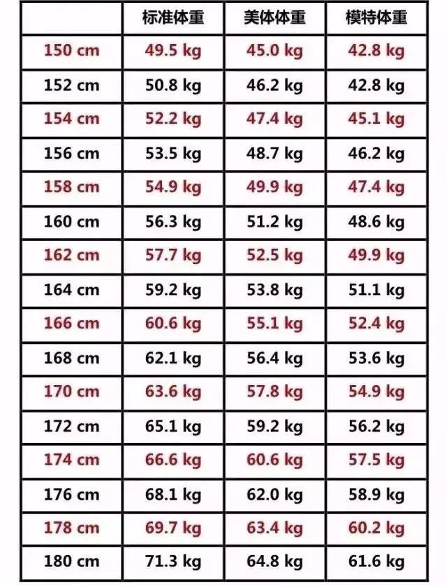 女子标准体重对照表