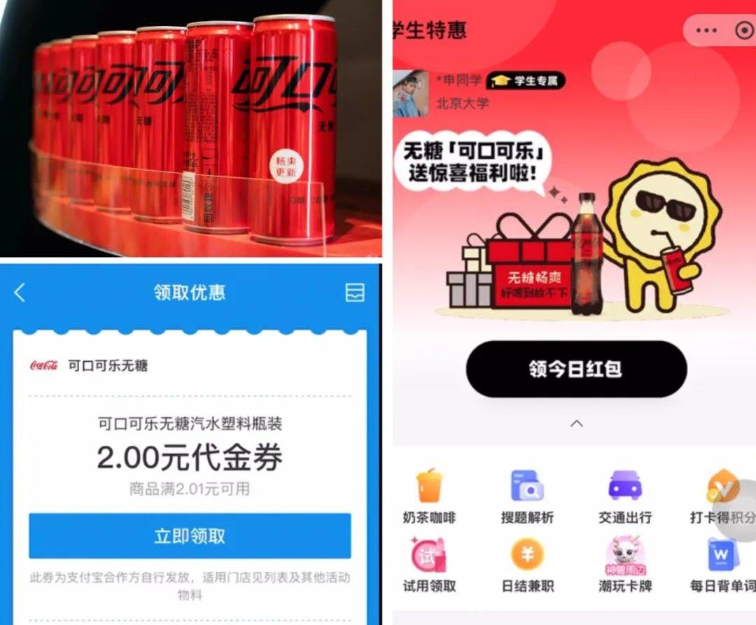 以可口可乐 无糖与支付宝的合作为例。以校园为主要沟通场景、年轻人为重点人群,通过支付宝覆盖6成高校大学生的优势,支付宝协助可口可乐 无糖,通过一场「学生特惠」营销活动,在支付宝会员频道、学生频道、支付频道三大流量阵地,打造打卡领优惠、签到抽奖等多种玩法,最终在活动上线1个月内成功吸引700万新用户参与。支付宝帮助品牌培养起年轻用户群体的消费习惯。