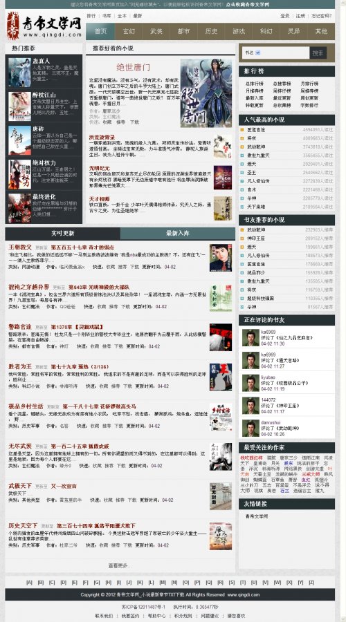 | 源码名称:仿青帝文学网源码仿青帝小说源码青帝文学网源码杰奇CMS | |