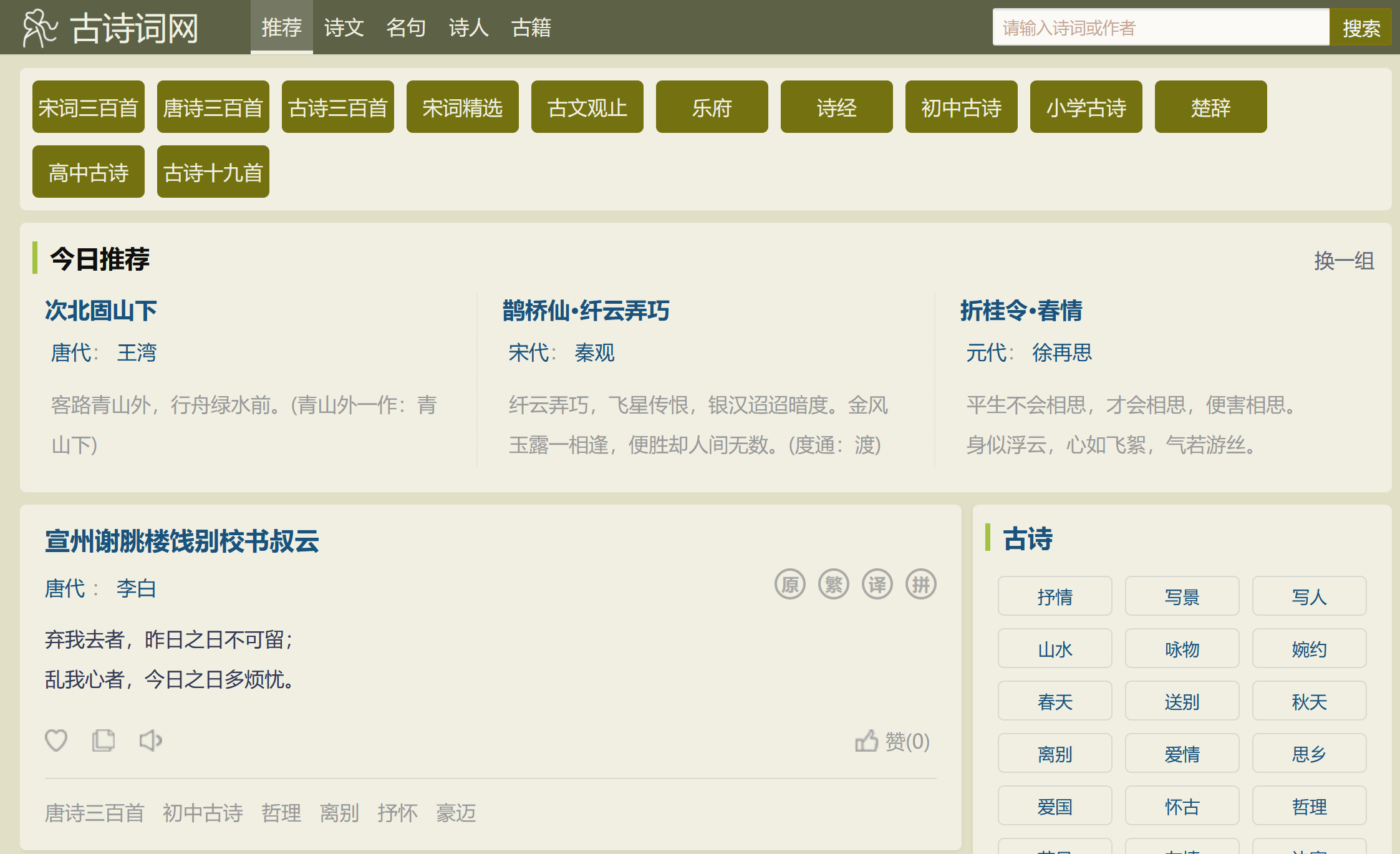 全站开源,合适养域名,做个情怀站!古诗也没有什么版权。