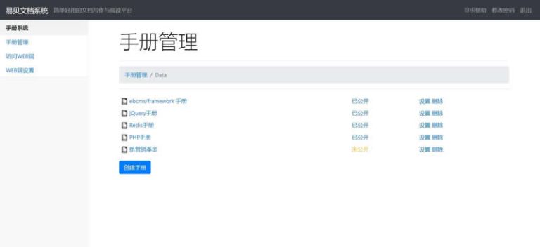 易贝文档写作阅读平台采用php+mysql开发,使用非常流行的markdown书写,开源免费。