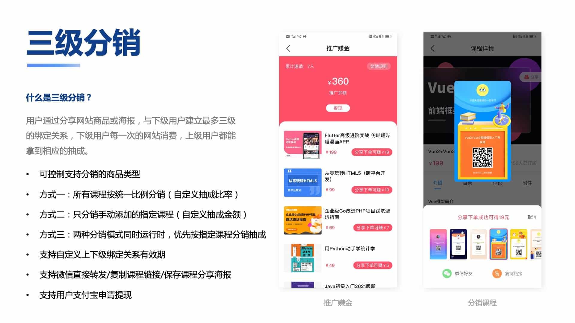 课程秒杀,团购,分销裂变,多种组合营销助你推广引流;
