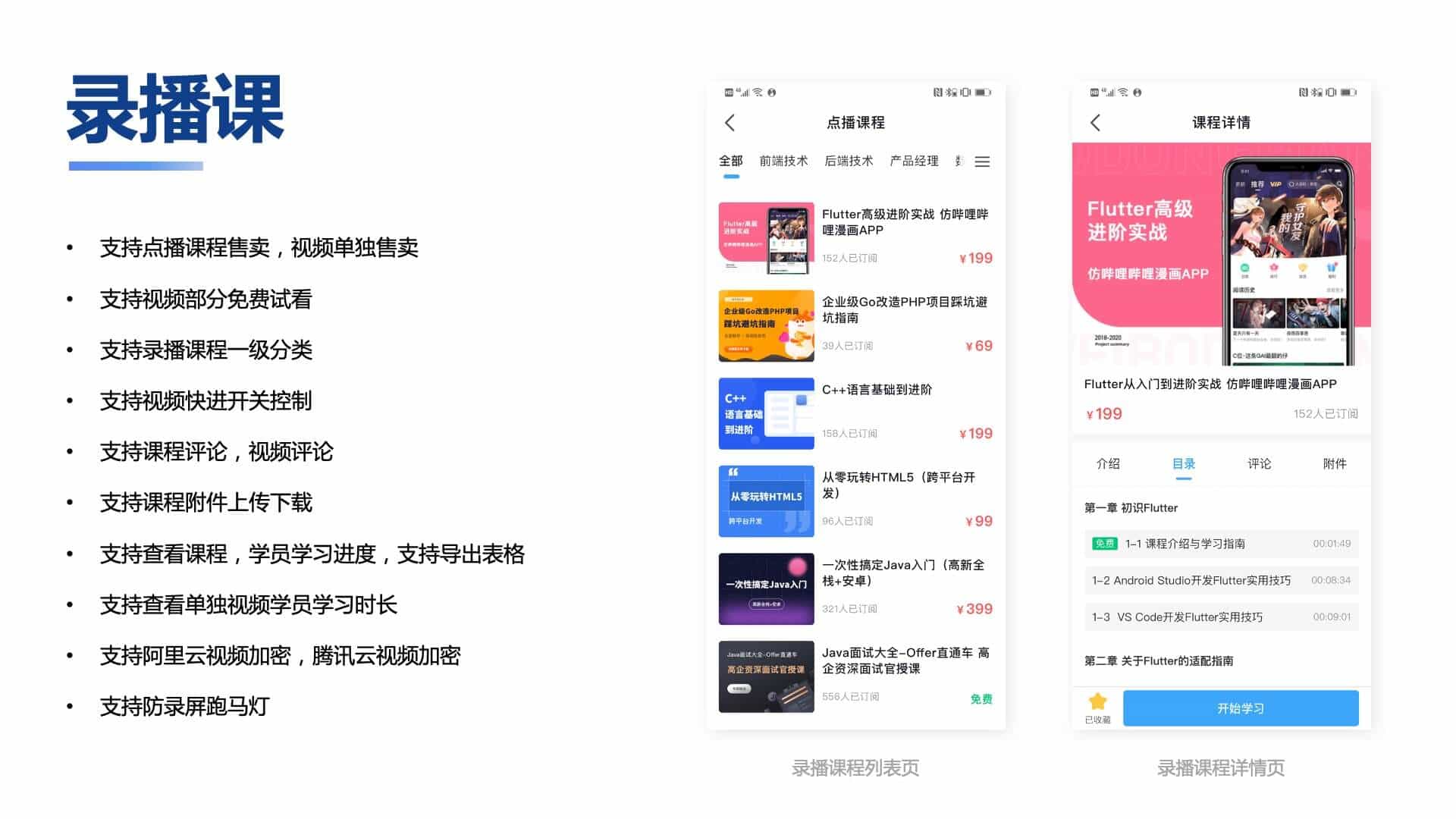 知识付费/在线培训解决方案PC网校/H5/小程序/APP全覆盖,低成本搭建你的私有网校。