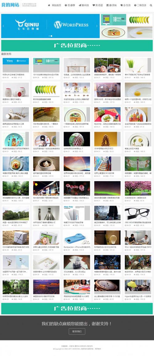 采用织梦CMS最新核心作为后台和底层,安全高效稳定!整站设计大气时尚美观,适合博客图片展示类的站点使用,代码结构简洁合理,整站响应式,自适应PC,平板,手机等各种尺寸,织梦58觉得不错的,很适合高端站长使用!非常漂亮!特别说明:弹出搜索框效果很好。