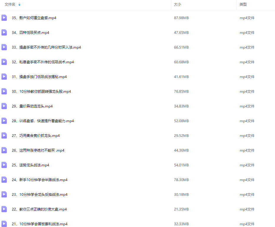 短线技巧龙头战法教你怎样选龙头股视频教程35集系统课资源简介: