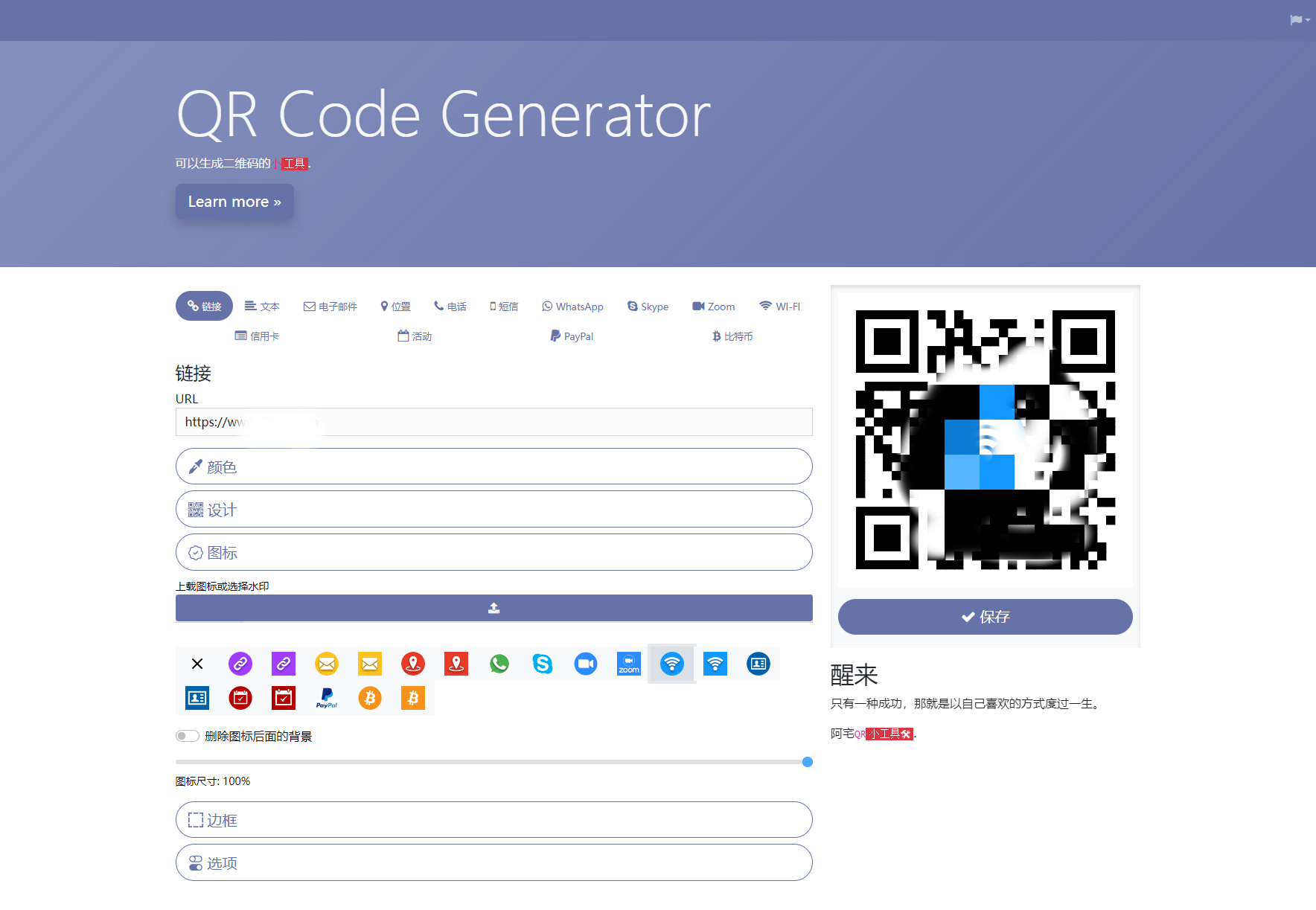 基于PHP编写的二维码在线生成系统。只需点击几下就可以生成您的个人二维码!上传您的徽标,选择自定义颜色,生成多种类型。选择一个图案并下载最终的qrcode。可用格式:.png,.svg