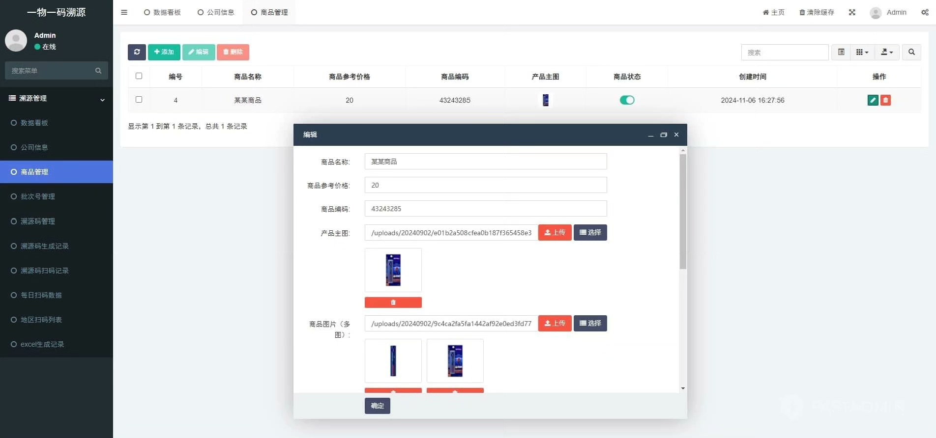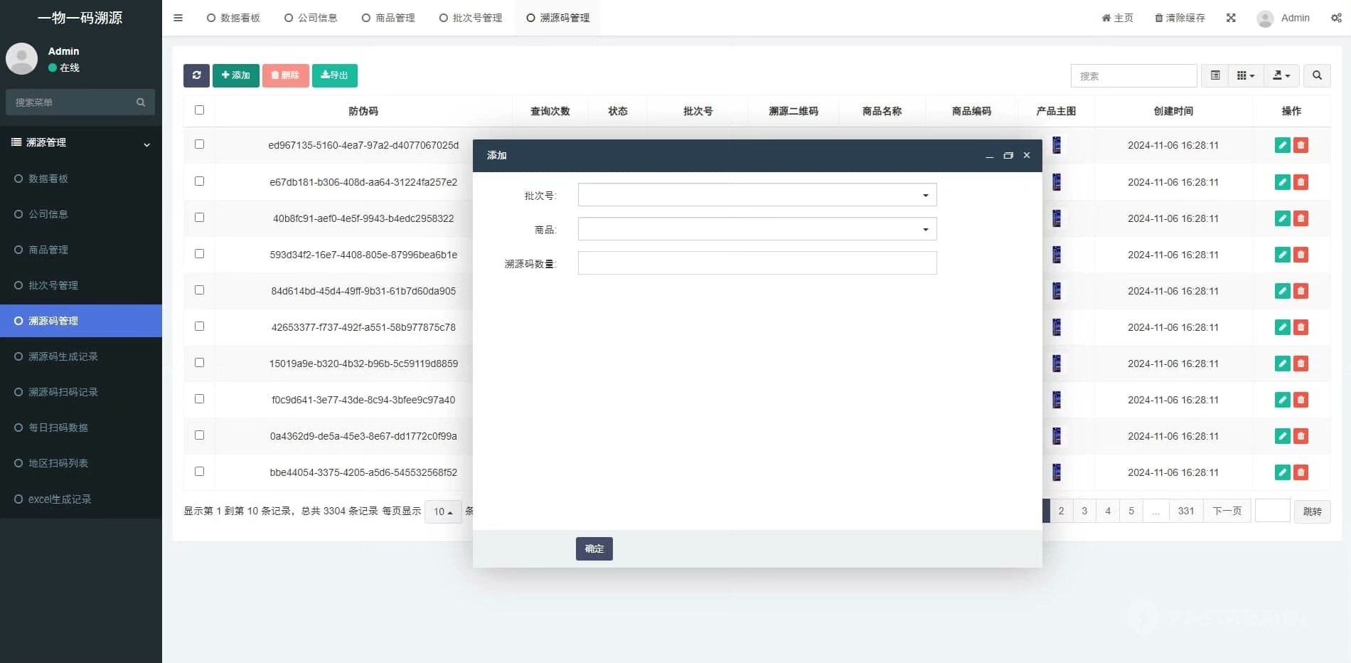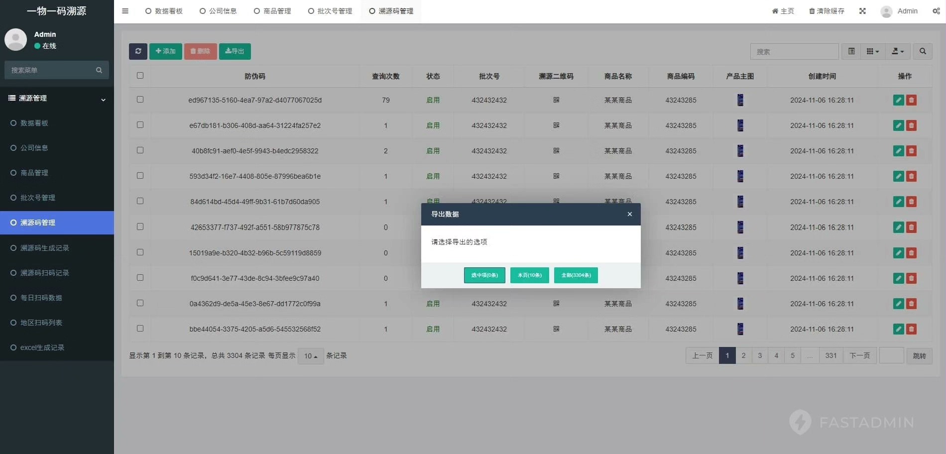 一物一码溯源管理系统基于ThinkPHP和FastAdmin构建,集成了数据看板、无限制的Excel导出功能、溯源码生成、商品管理、地区扫码记录、公司设置、批次号追踪以及每日扫码统计等功能。系统提供完全开源的前后端代码,并支持私有化部署。