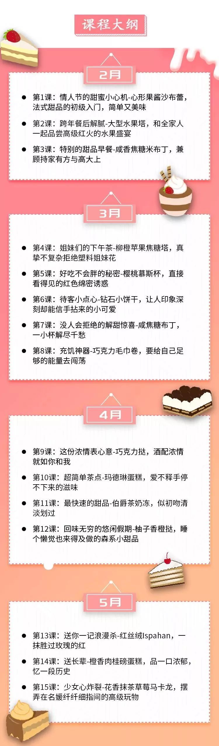 让你0基础学习的西式甜品技巧,摆脱免费视频、山寨食谱知其然不知其所以然、中看不中吃、发挥不稳定、总也学不会的窘境。