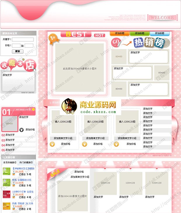 | 源码名称:价值百元的粉色豪华旺铺全套+80套精美描述模板 | |