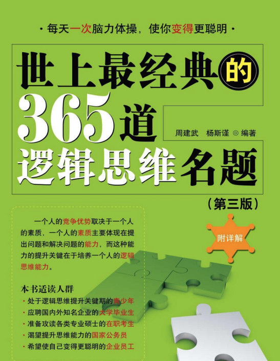 世上最经典的365道逻辑思维名题,适合处于逻辑思维提升的青少年,大学毕业生,在职考生,国家公务员及企业员工