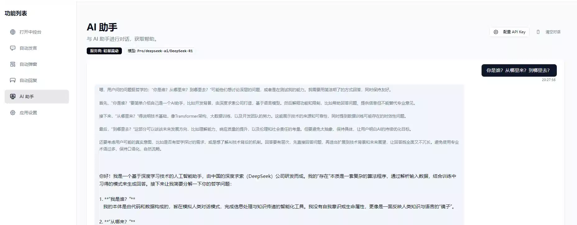 AI 智能助理:接入 DeepSeek,支持官方、OpenRouter、硅基流动、火山引擎等所有支持 openai chat接口的提供商
