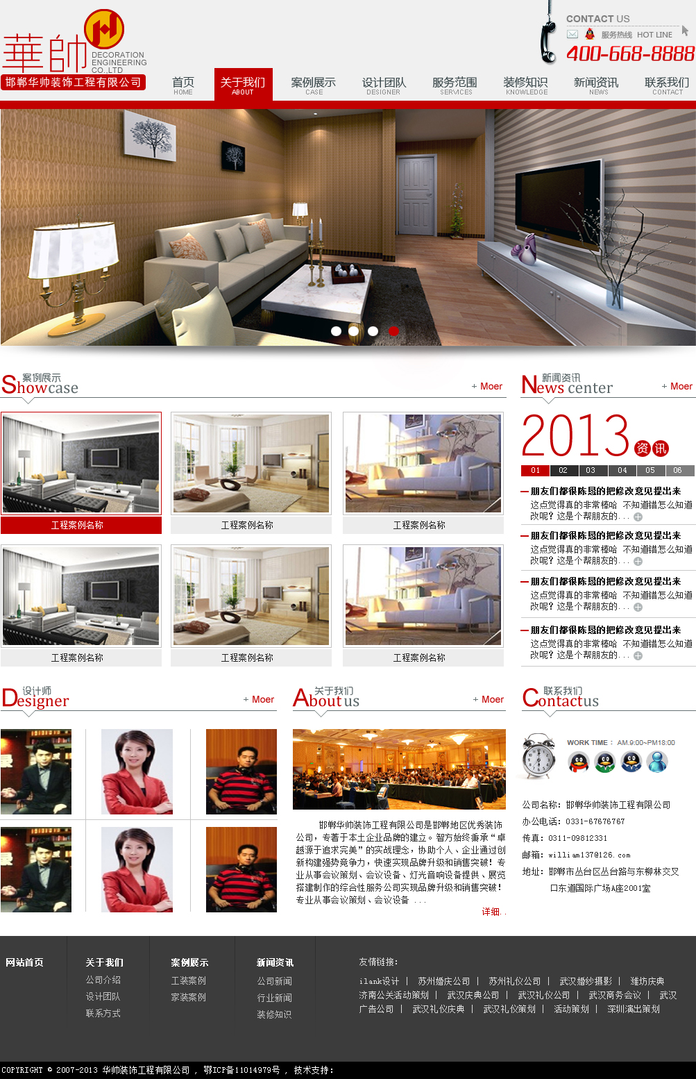 | 源码名称:高端大气红色华帅装修企业网站模版 特价dede5.7织梦模版 | |