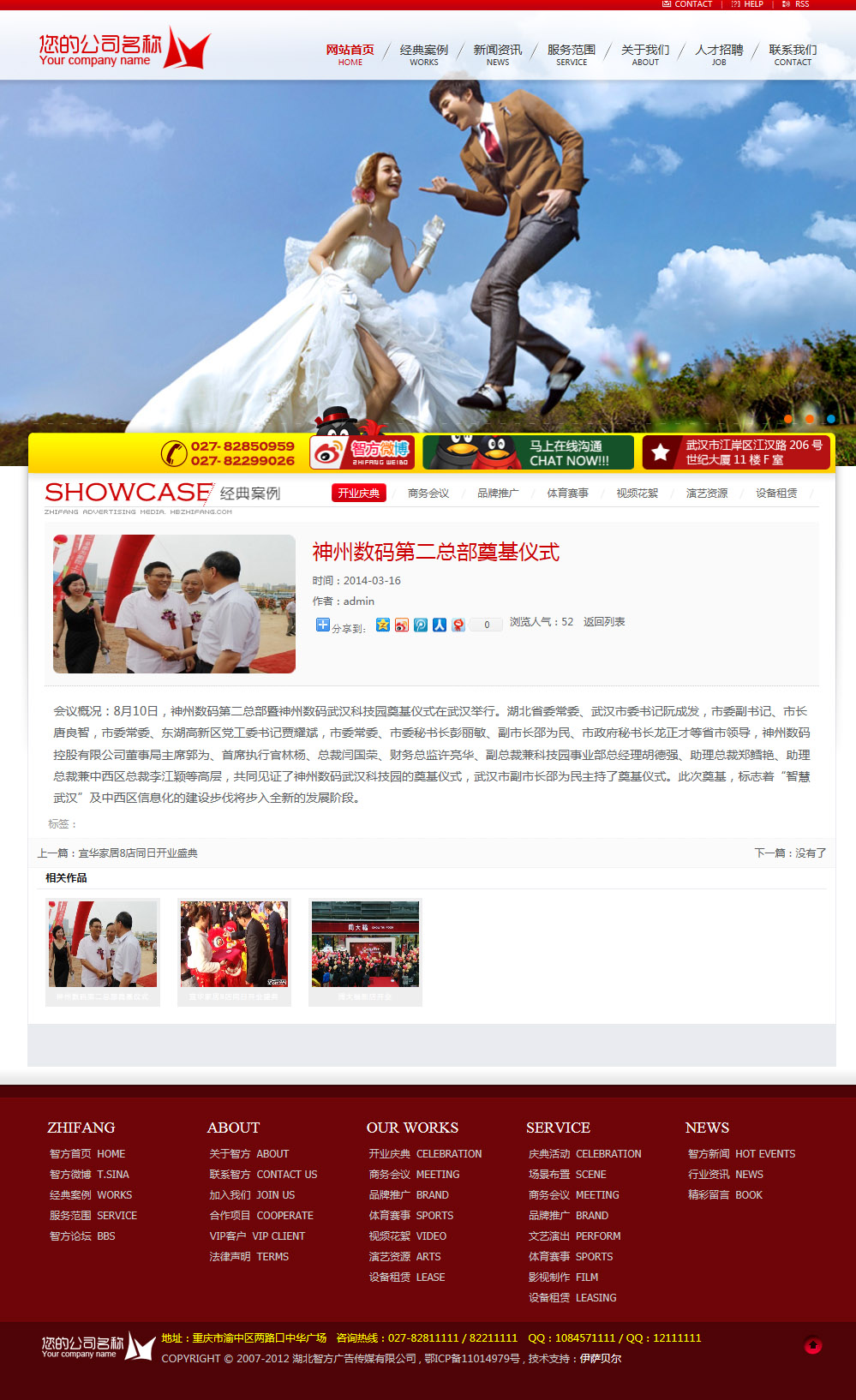 | 源码名称:织梦5.7红色高端婚庆摄影传媒企业网站模版源码 带后台及数据库 | |