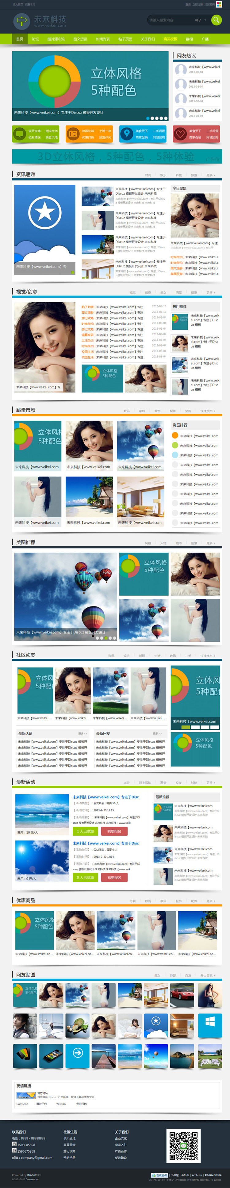 | 源码名称:discuzx3.2模板 未来科技五色3D立体时尚discuz x3.1门户论坛模板 | |