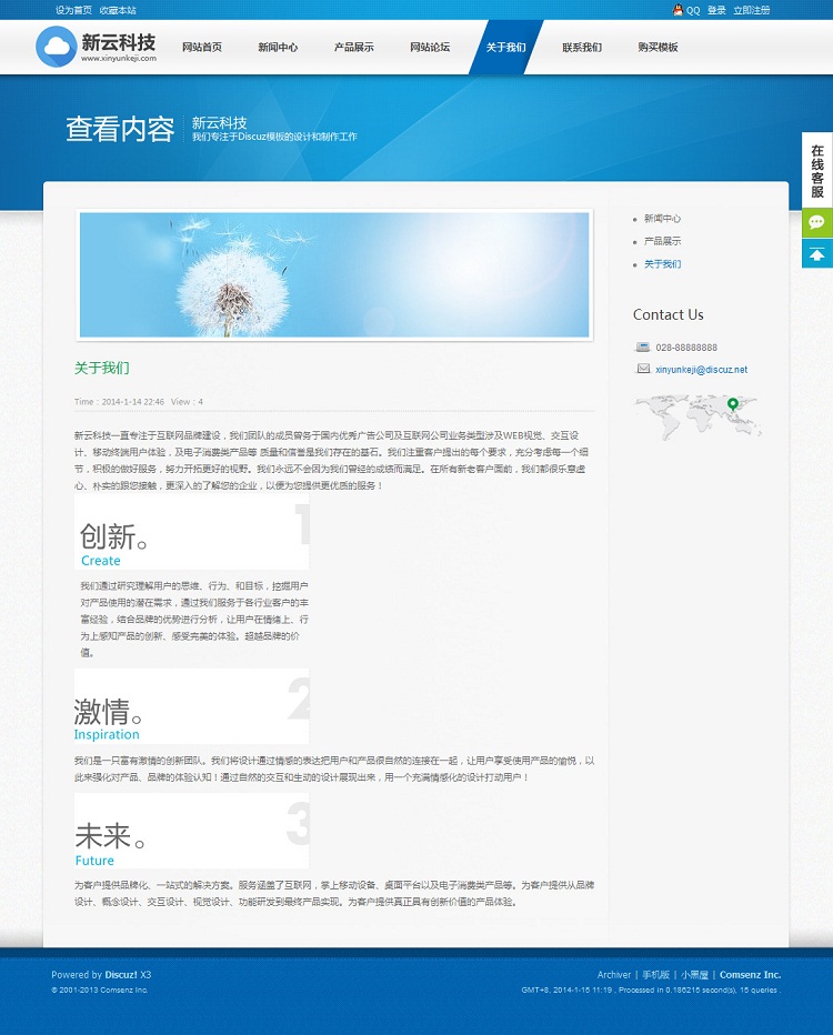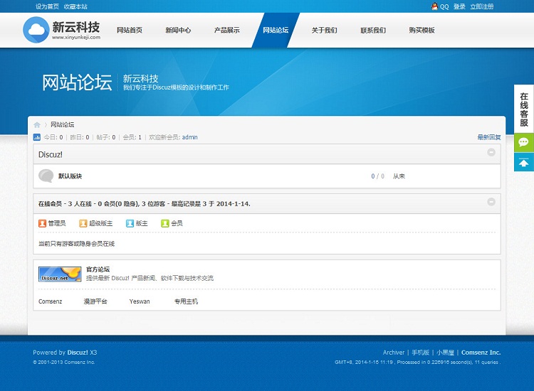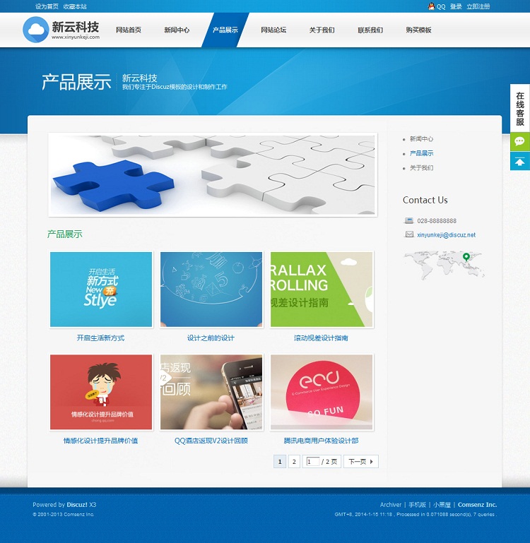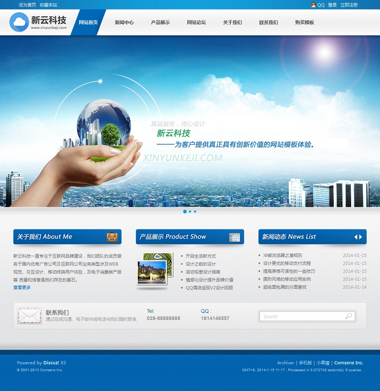 | 源码名称:新云科技蓝色通用大气企业公司模板 discuz x3.1_x3.2模板 | |