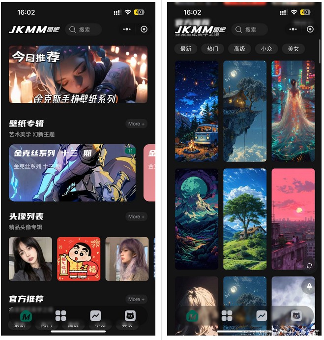 头像壁纸取图小程序 壁纸小程序 黑色主题 超美UI 壁纸小程序 流量主小程序