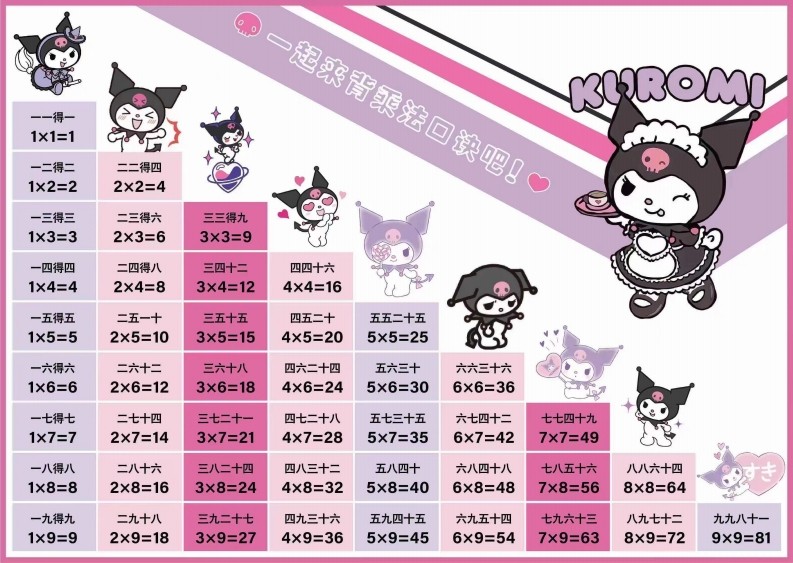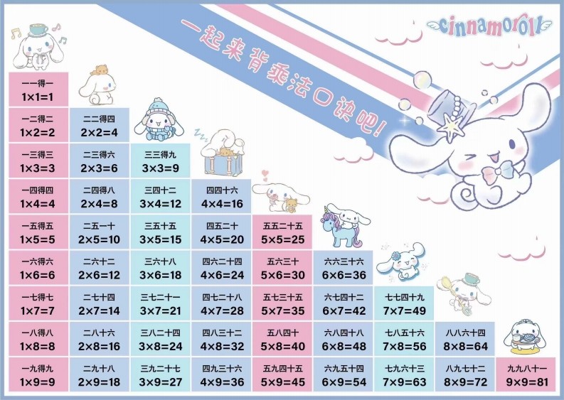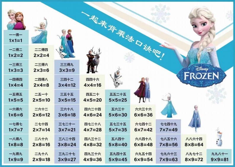 新版乘法口诀表, 一年级乘法口诀表