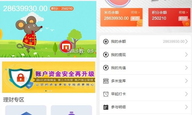 【精品源码】最新袋鼠投资理财|带计步跑步功能|余额宝功能|早起打卡功能|积分商城金融众筹袋鼠投资理财,本程序有技步跑步功能,余额宝功能,早起打卡,积分商城,抽奖功能等各方面为一体的综合理财项目。■产品优势1.后台增加超级密码2.后台增加外部链接客服3.增加打卡自动增长脚本4.增加项目自动增加进度条5.会员管理同步会员公众号乙帅读者每天操作日志6.系统集成快手,抖音广告联盟开户即可对接使用