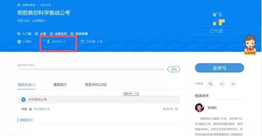 他分享的《明哲教你科学备战公考》报名火爆,短短一小时,284333人报名参加听课。