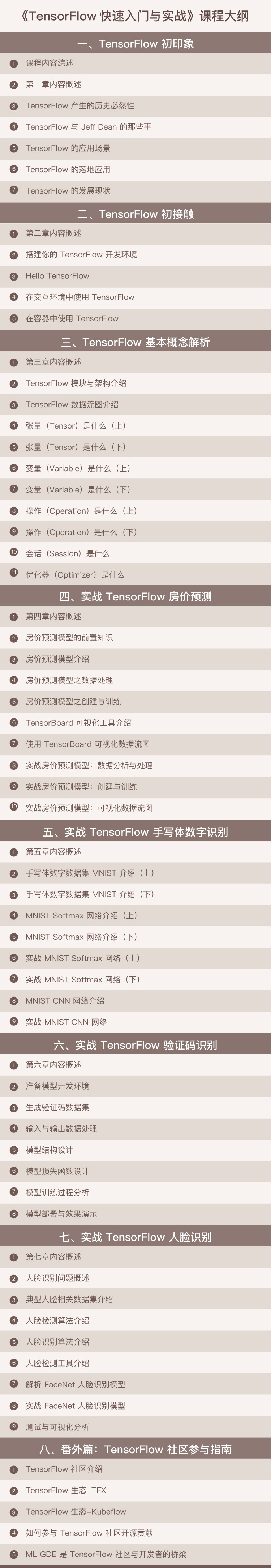 因此,极客时间联合 Google Developers Expert 彭靖田联合推出《TensorFlow 快速入门与实战》这门课程,课程以 TensorFlow 1.12 版本为基础,从 TensorFlow 的发展历程、核心概念开始讲起,并通过四个由浅到深的实战项目练习(提供全部源代码),帮你快速上手 TensorFlow,并能将所学知识应用到工作中,用 AI 为业务赋能。