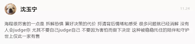 海程关于工作、自我探索的复盘,也给了无数人力量。