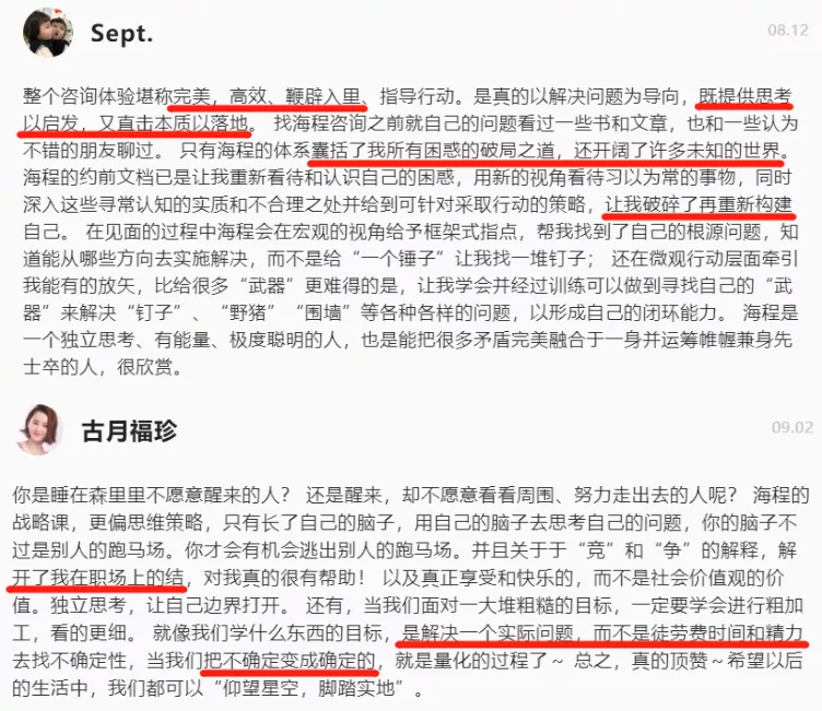 不能落地的目标,都是空想。海程的咨询,好评率高达100%。大部分学员都纷纷点赞:方向不对,努力白费。