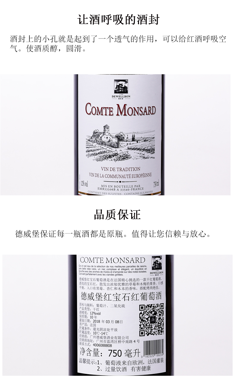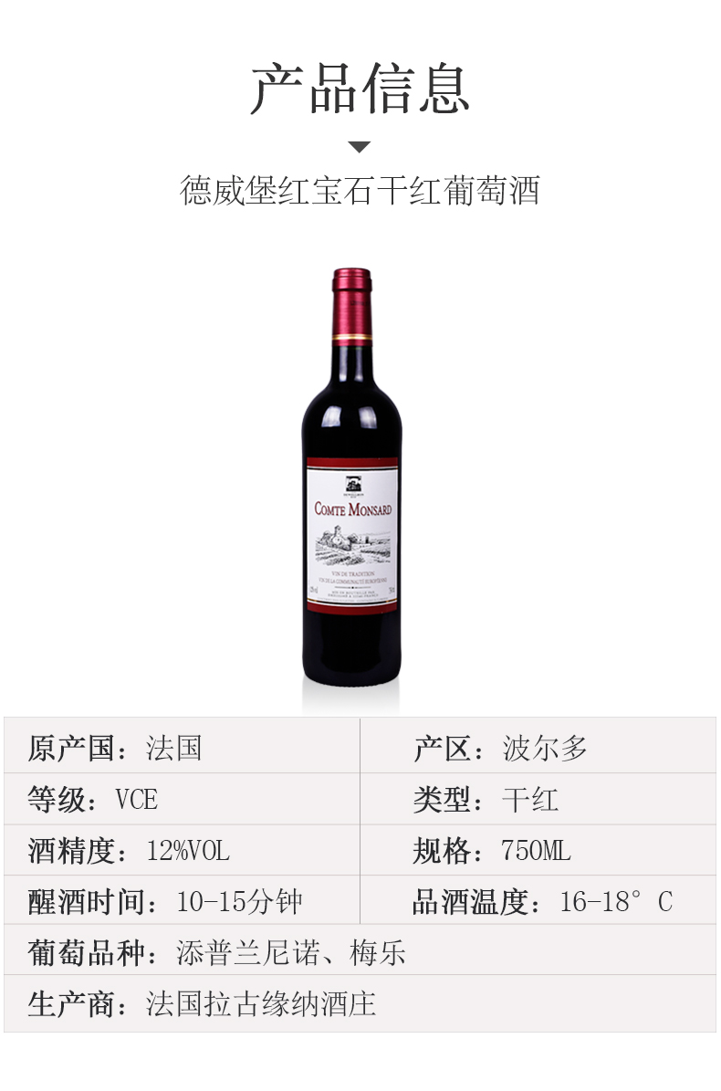 红宝石红葡萄酒 法国原瓶原装进口波尔多 礼盒装 干红红酒...