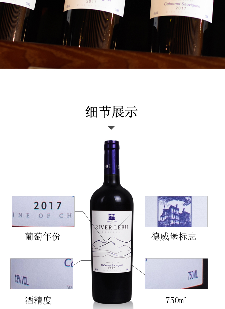 莱布河红葡萄酒 智利原瓶进口 礼盒装 赤霞珠14度干红红酒...