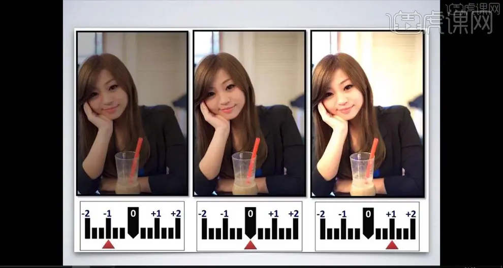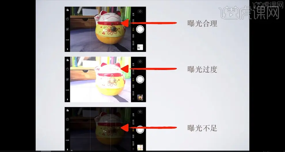 2.照片从左到右分别为曝光不足、曝光正常和曝光过渡,画面的亮度越来越亮。