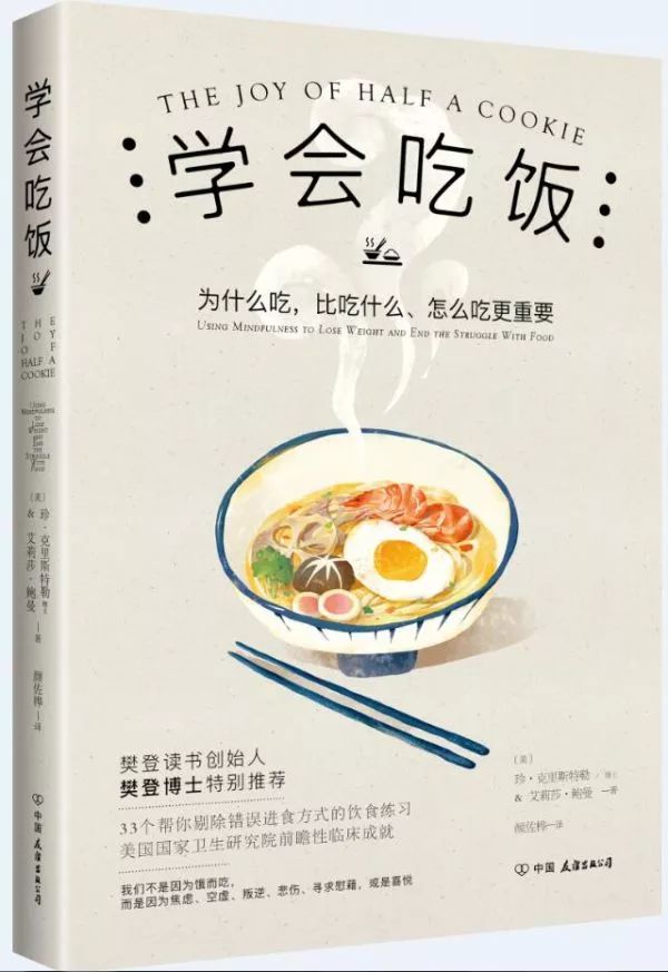 美国印第安纳州立大学心理系荣誉教授,耶鲁大学博士珍•克里斯特勒和《纽约时报》畅销书作家艾莉莎•鲍曼在《学会吃饭》中讲述了这样一种饮食哲学:食物不分好坏,停止担心卡路里。察觉自己为什么吃,比吃什么、怎么吃更重要——大多数的时候,我们不是因为饿而吃,而是为了抵抗焦虑、空虚、叛逆、悲伤,寻求慰藉,或是喜悦。