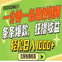 一分钟一条原创作品,条条爆款,狂撸各大平台,轻松日入1000+